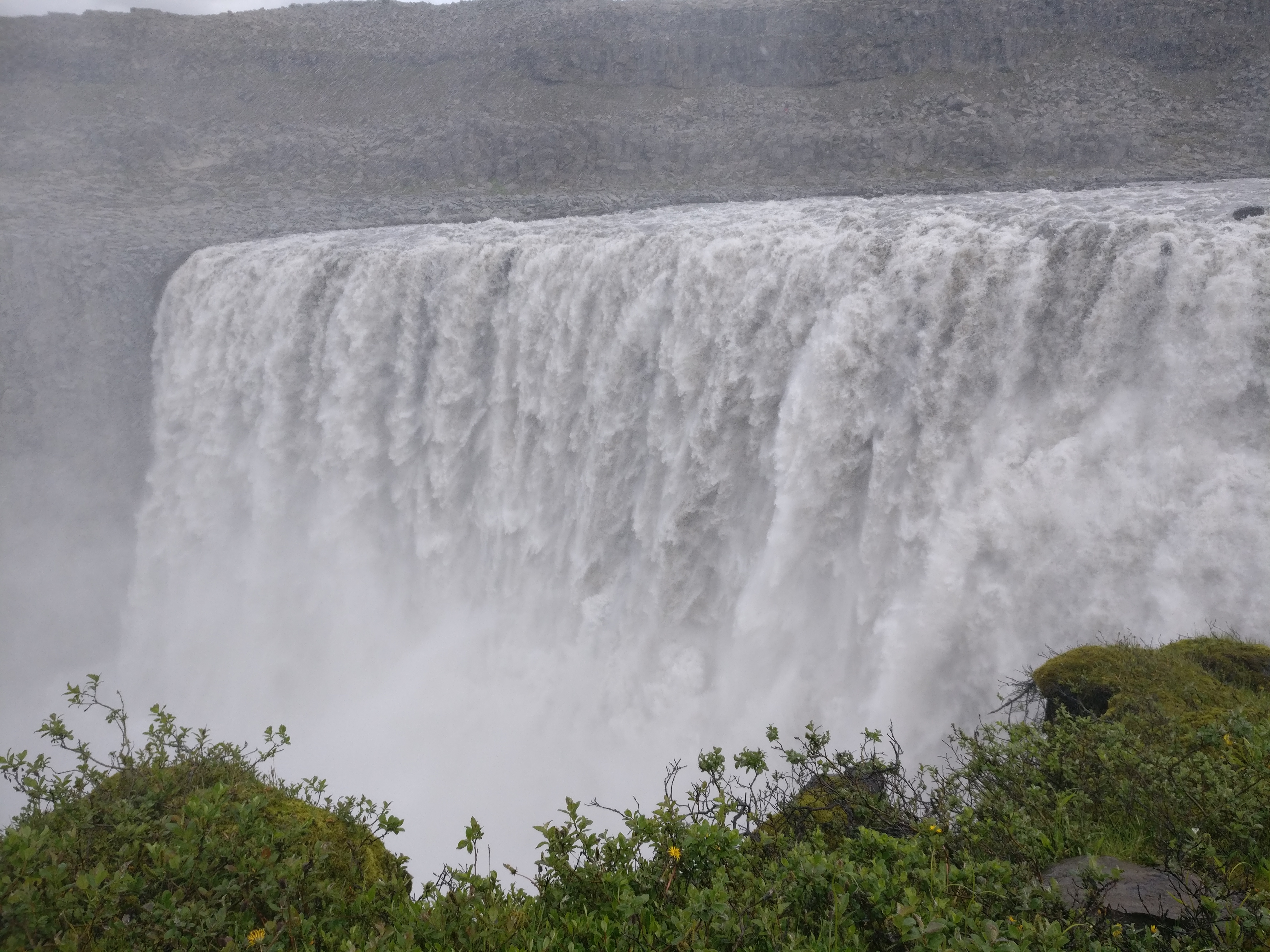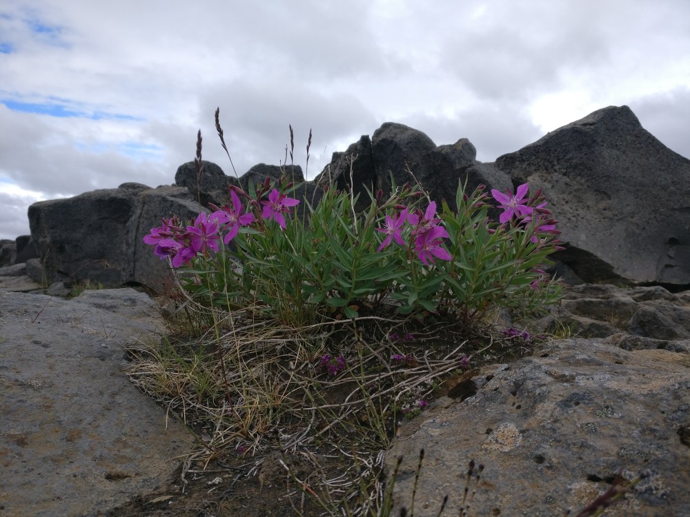 We did a small detour to visit the Dettifoss waterfalls which is also a nice hike between hours riding. An enormous water mass leaving you soaked in a few minutes. Despite the hostile rocky landscapes brightly coloured flowers are spotted everywhere.