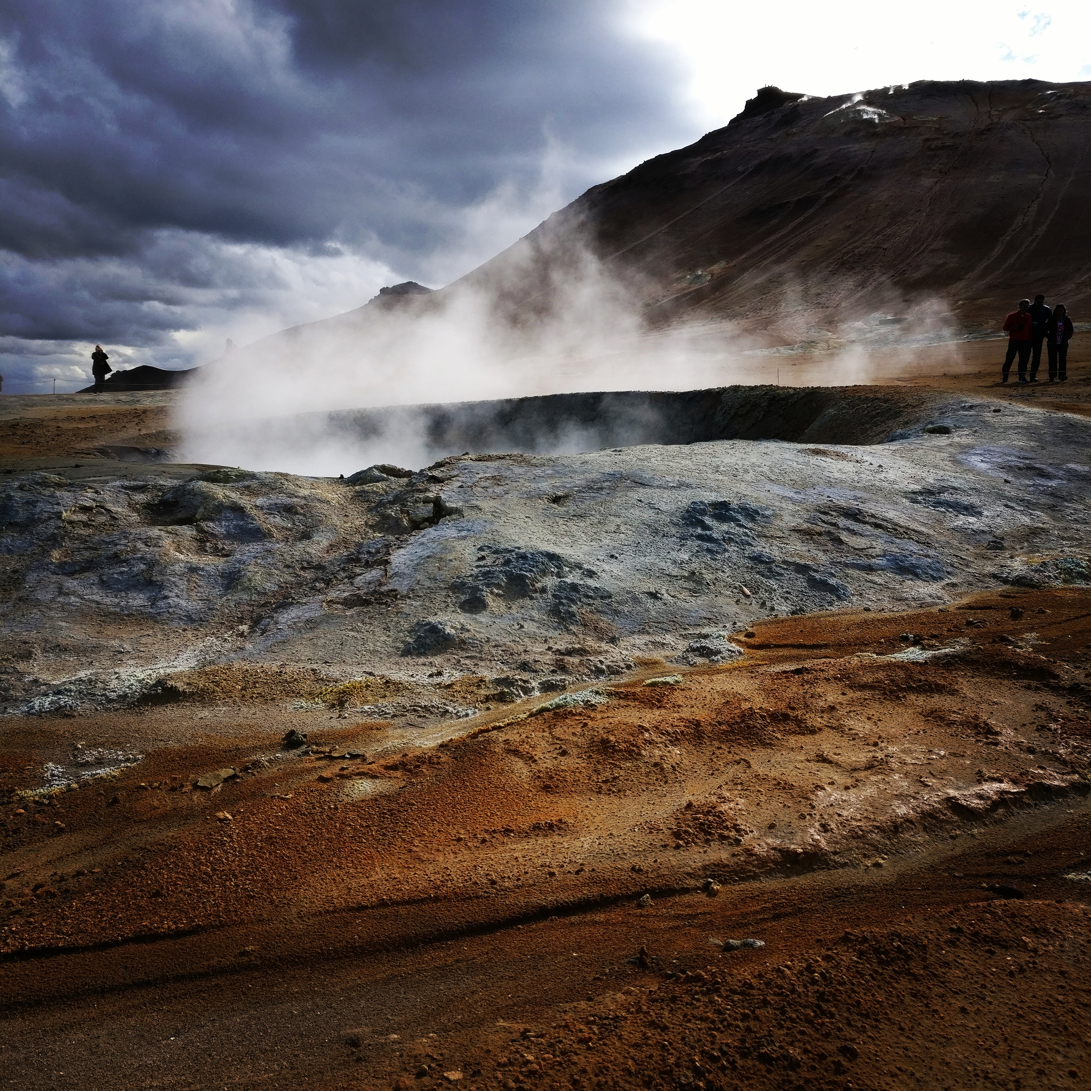 Last stop in between was a very bad smell of rotten eggs but a nice sight. Geysir fields and mud pools. You realize here that the earth is so active and moving under the surface.