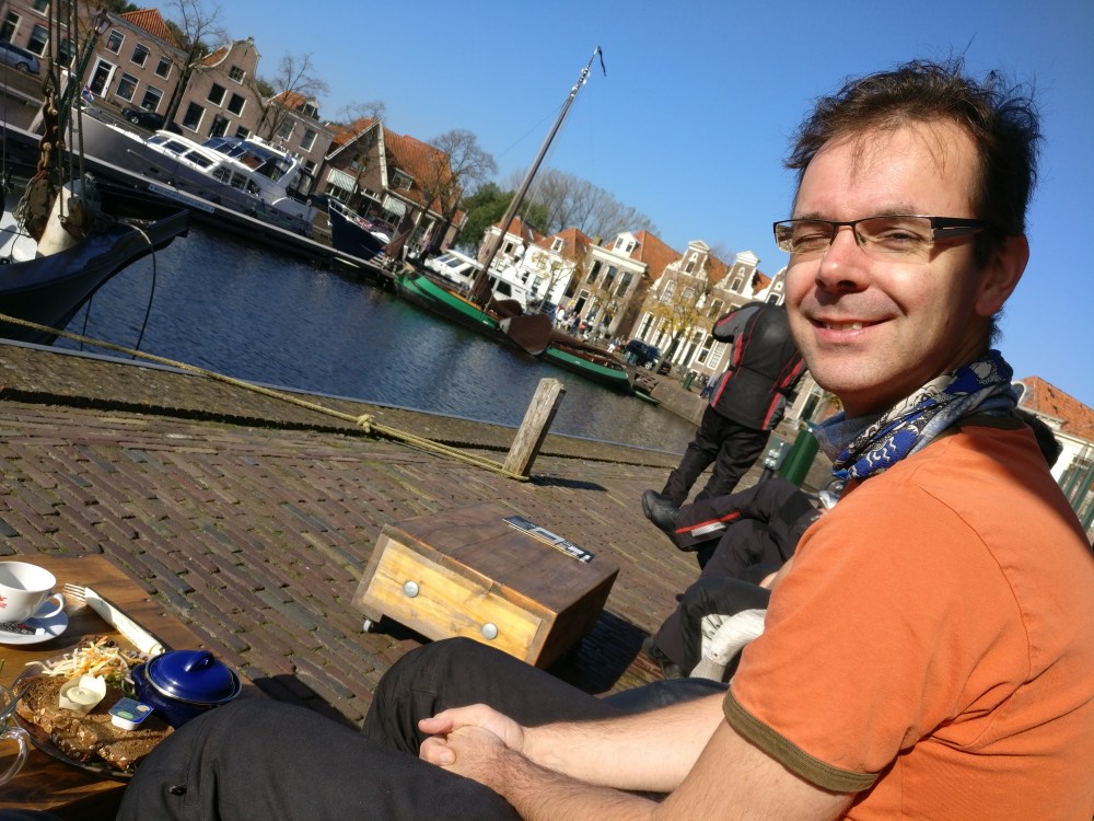 Our stomachs start to rumble and we decide to have lunch in Blokzijl wich has a small harbour and old Dutch houses. We enjoy a homemade meatball with mustard in the warm sun on the terrace together with other bikers. The parking lot is jammed with lots of bikes in all shapes, sizes and colors. It does not matter how expensive or fancy your bike is. If you ride you all experience the same thrill of playing with your bike taking in the scenery and scents around you.