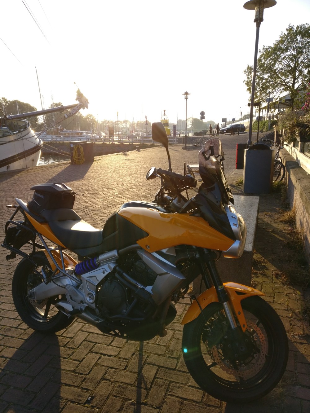 We end up in Enkhuizen where we visit my best friend who just ended a sail race as third and layed anchor in the harbour of Enkhuizen. The sun is already sinking and showing that although the weather feels like summer the days are shorter. We decide to ride back home cruising the Markerwaarddijk to the other side again. Enjoying the great light show the sun gives while setting over the lake.