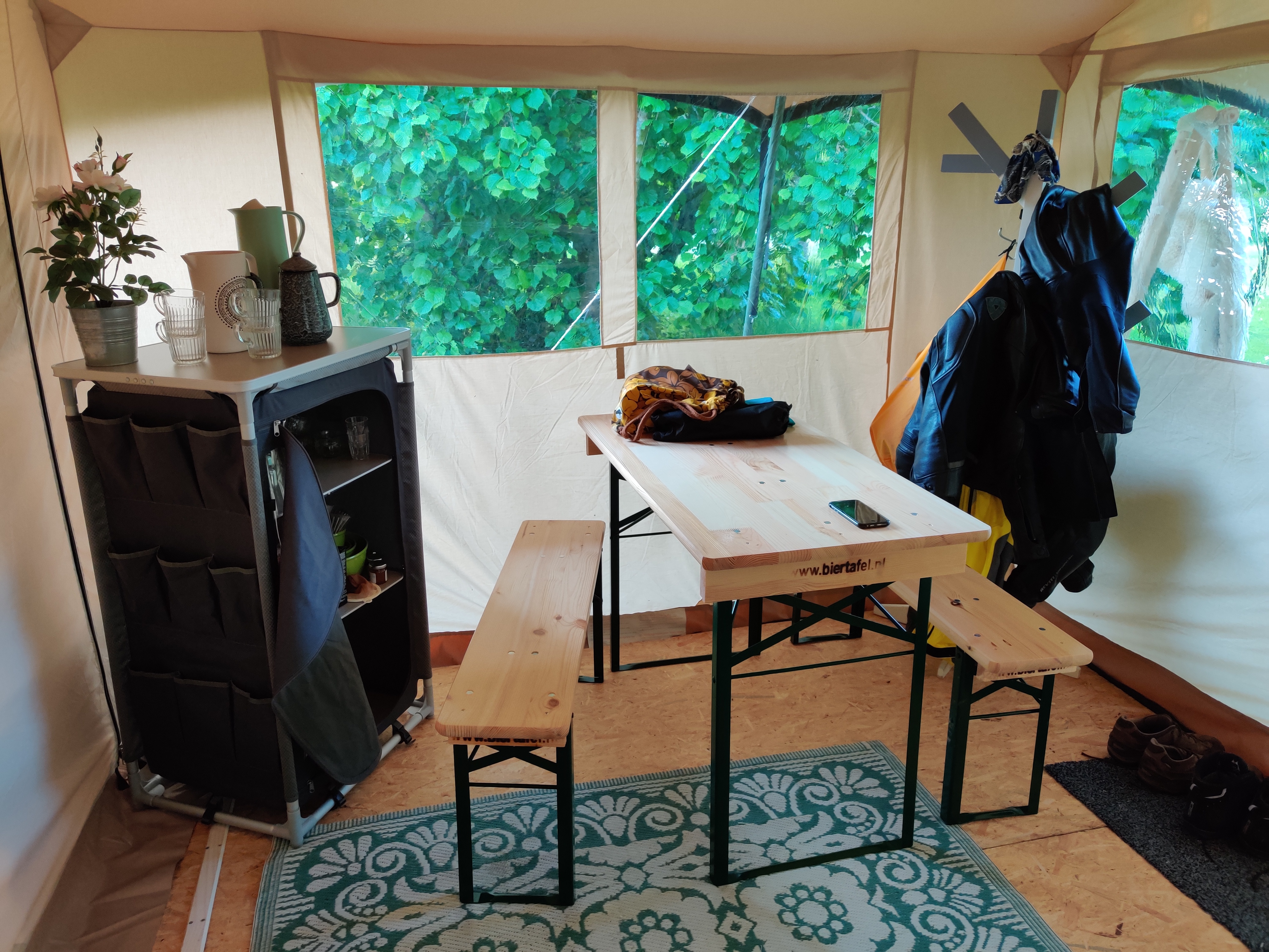 Dus gingen we naar Friesland om daar een weekje in de Boomgaard te zitten op onze privé camping in Jirnsum. Elk nadeel heeft zijn voordeel. Een mooie glampingtent stond tot onze beschikking met eigen sanitair en verder niemand op de camping.