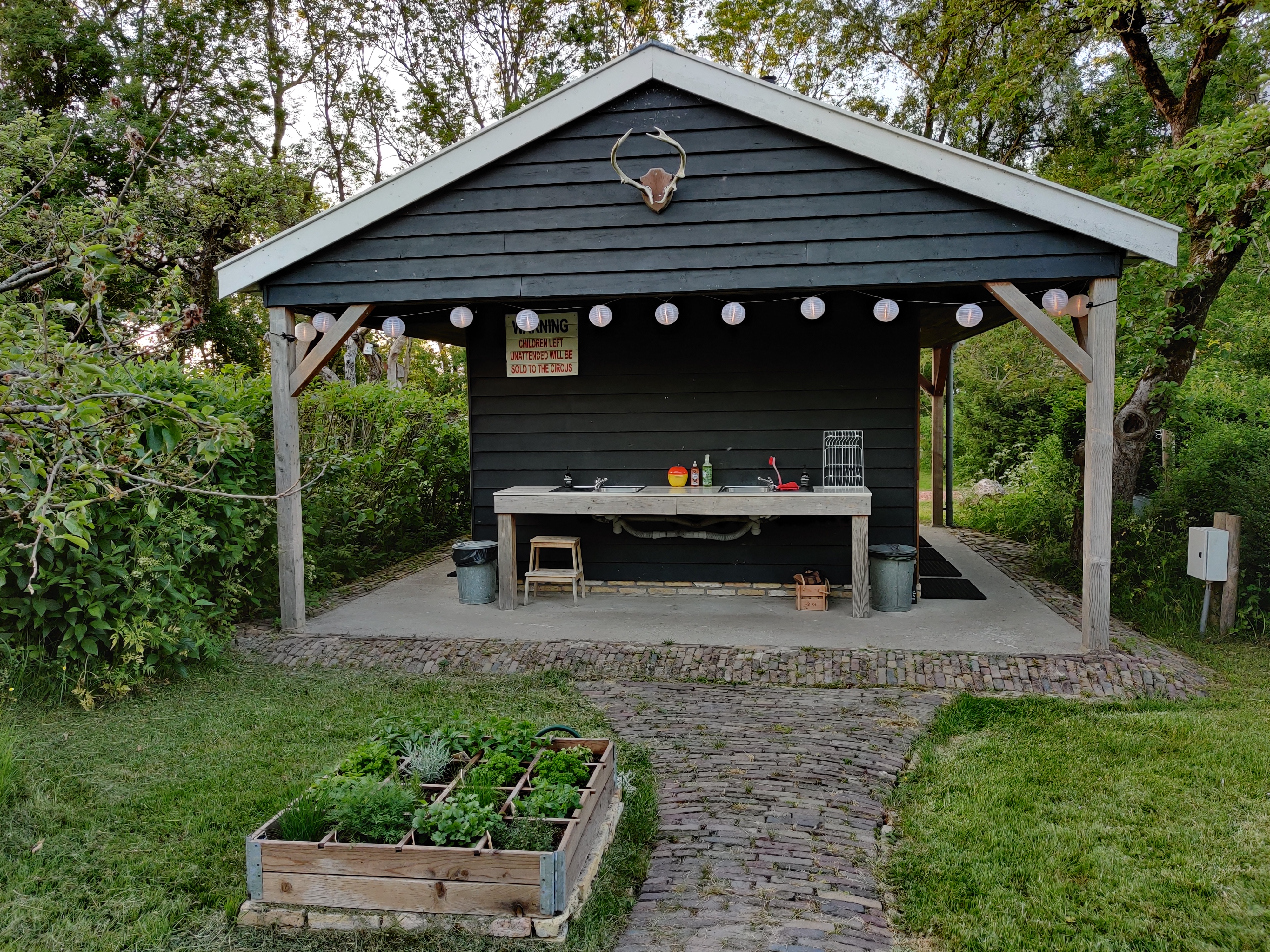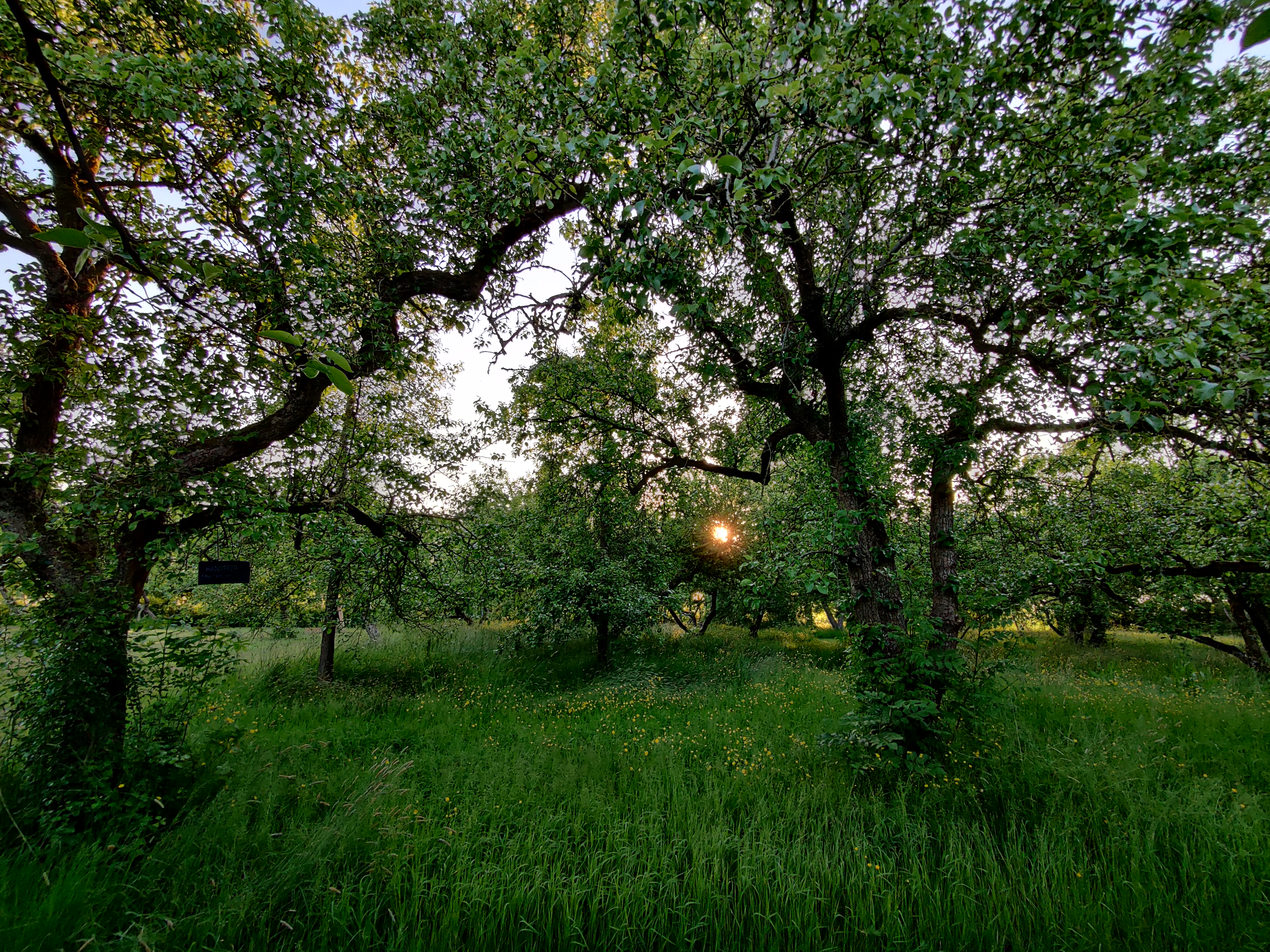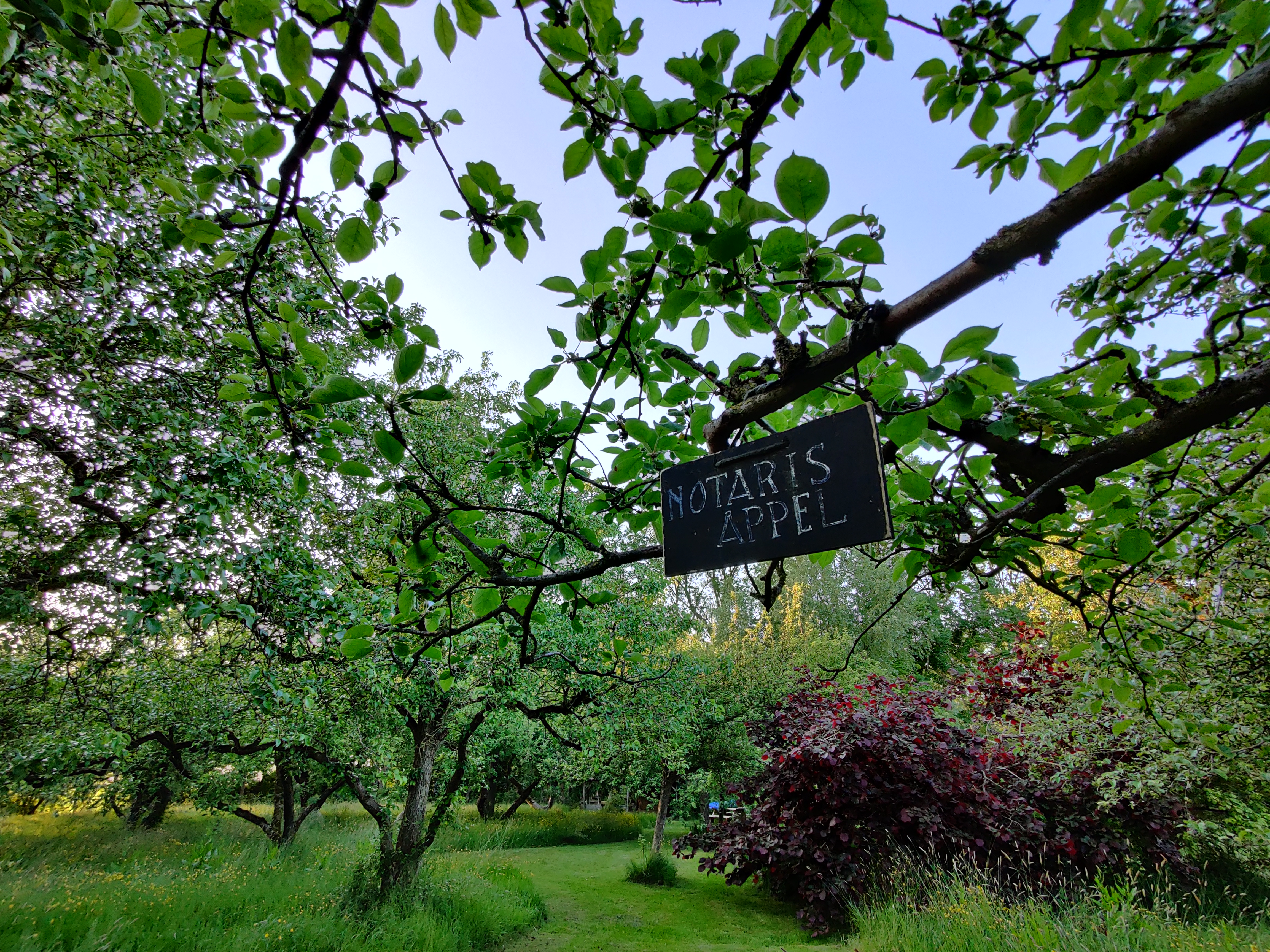 In de boomgaard zijn allerlei soorten appels en peren, maar ook vlierbloesem, aalbessen en kruisbessen. Het is een gezoem van bijen en libelles en s avonds hoor je de kikkers kwaken. De hele dag wisselen verschillende vogels elkaar af met prachtig gezang.
