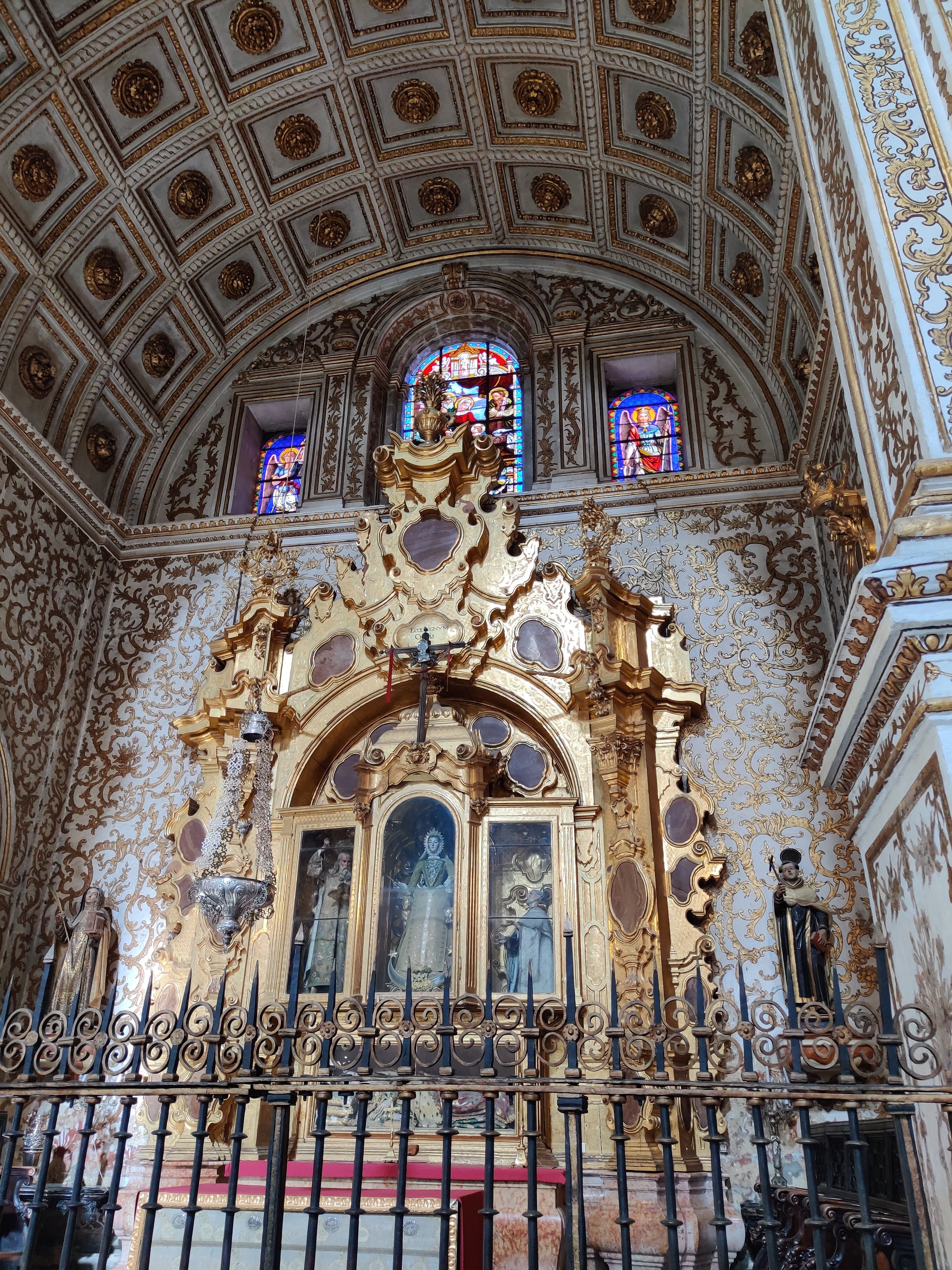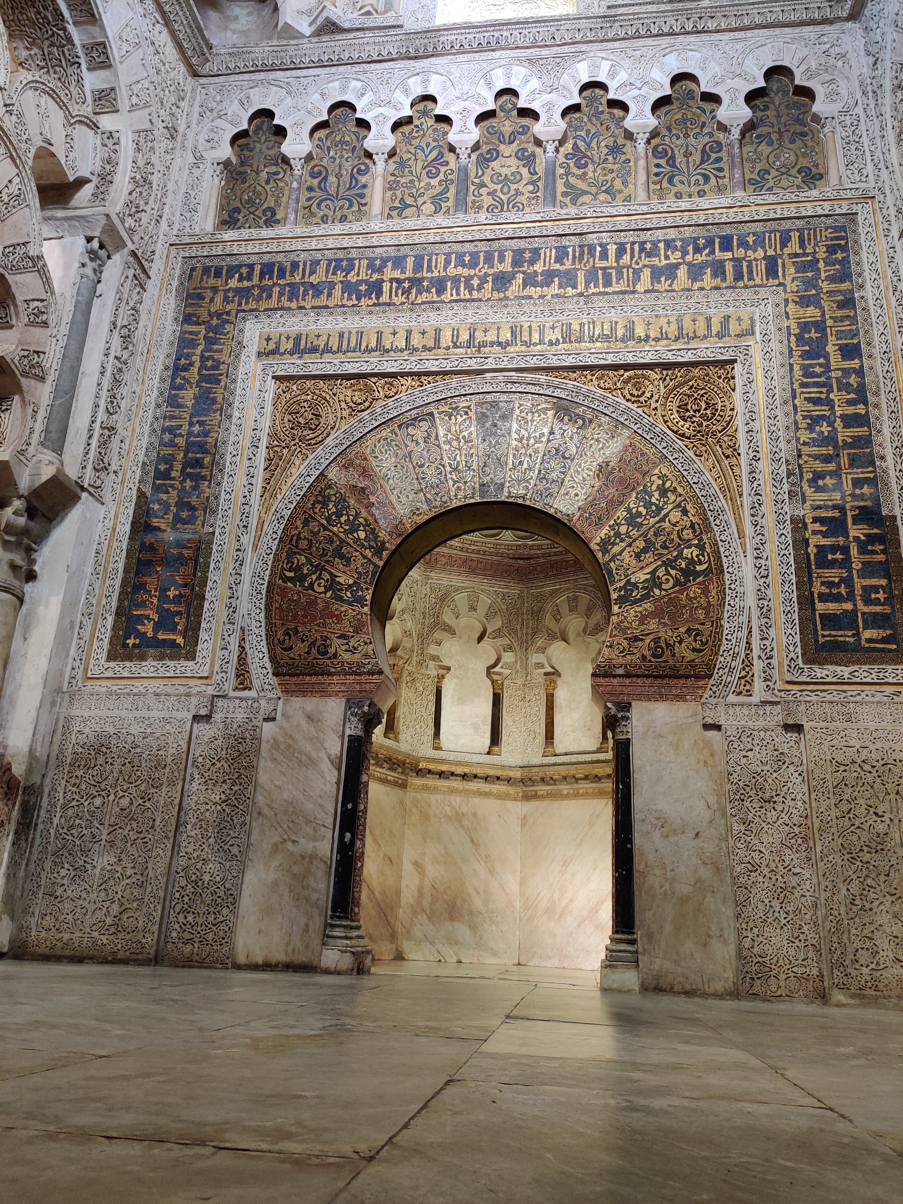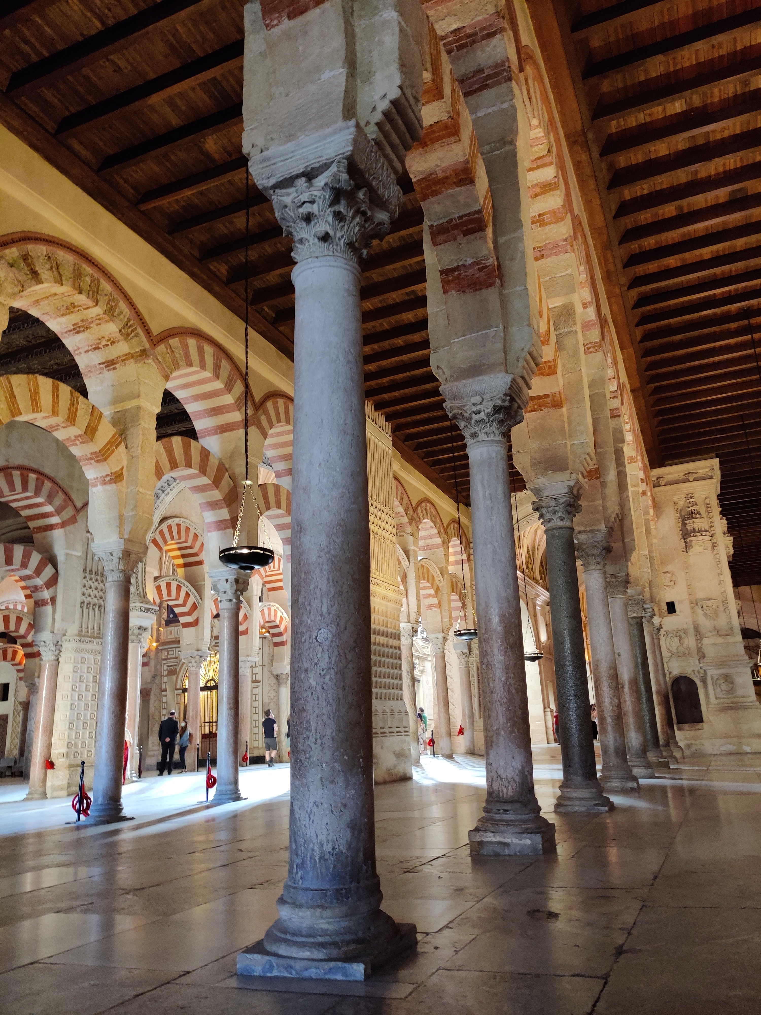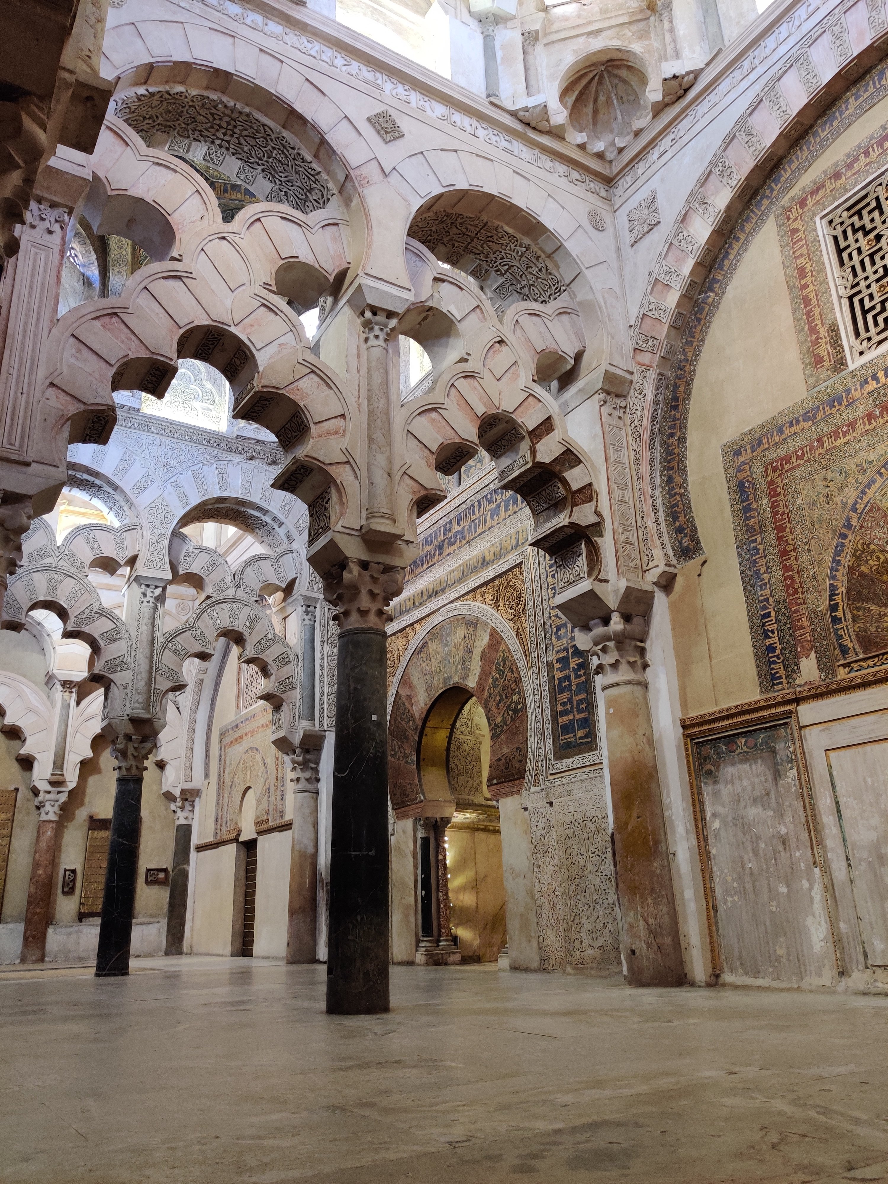 Van Granada rijden we naar Cordoba. In Cordoba hebben we een hotel met een dakterras en zwembad op het dak. Je hebt een prachtig uitzicht op de oude stad en de Romeinse brug. In Cordoba bezoeken we de hele oude Mezquita (Spaans voor moskee). Een werkelijk betoverende kathedraal die echt uniek is. Het is een kerk geweest, gebouwd op de fundamenten van een Romeinse tempel. De Moren hebben na verovering er een moskee van gemaakt en dit complex steeds verder uitgebreid, waarna sinds de Christelijke herovering het weer als kathedraal in gebruik is. Ik moet wel zeggen dat ik juist de prachtige bogen fascinerend vond en de Christelijke nissen erg protserig en kitscherig. De bogen deden me denken aan Escher zijn figuren. En dat is grappig, want later lees ik dat Escher diep onder de indruk was van dit gebouw. Ik snap het wel, je blijft kijken naar de herhaling, de kleuren en vormen. Een schitterende mihrab (gebedsnis) in een muur is erg sprookjesachtig. In de middag bezoeken we ook nog de tuinen van het Alcazar de los Reyes Cristianos.