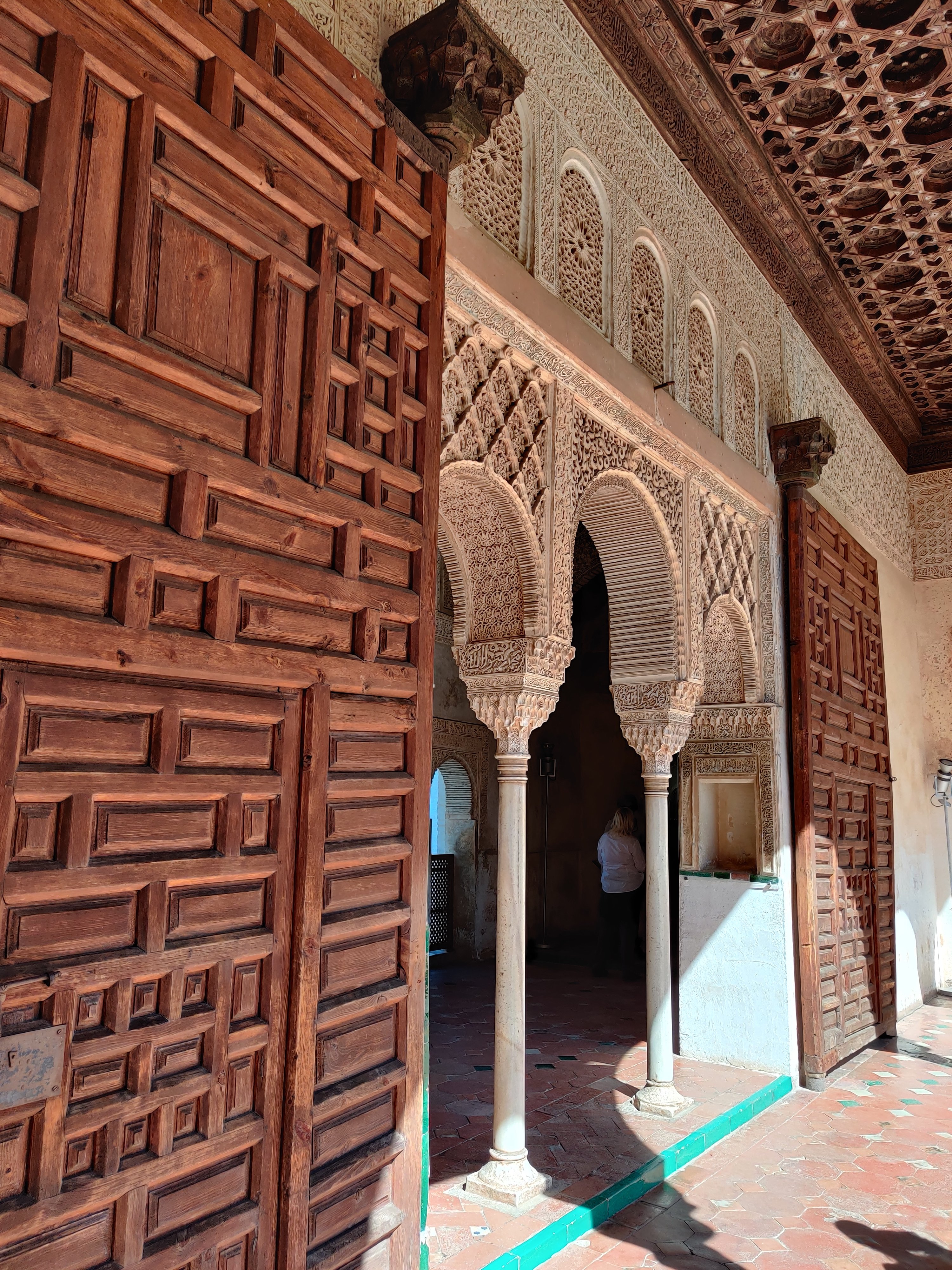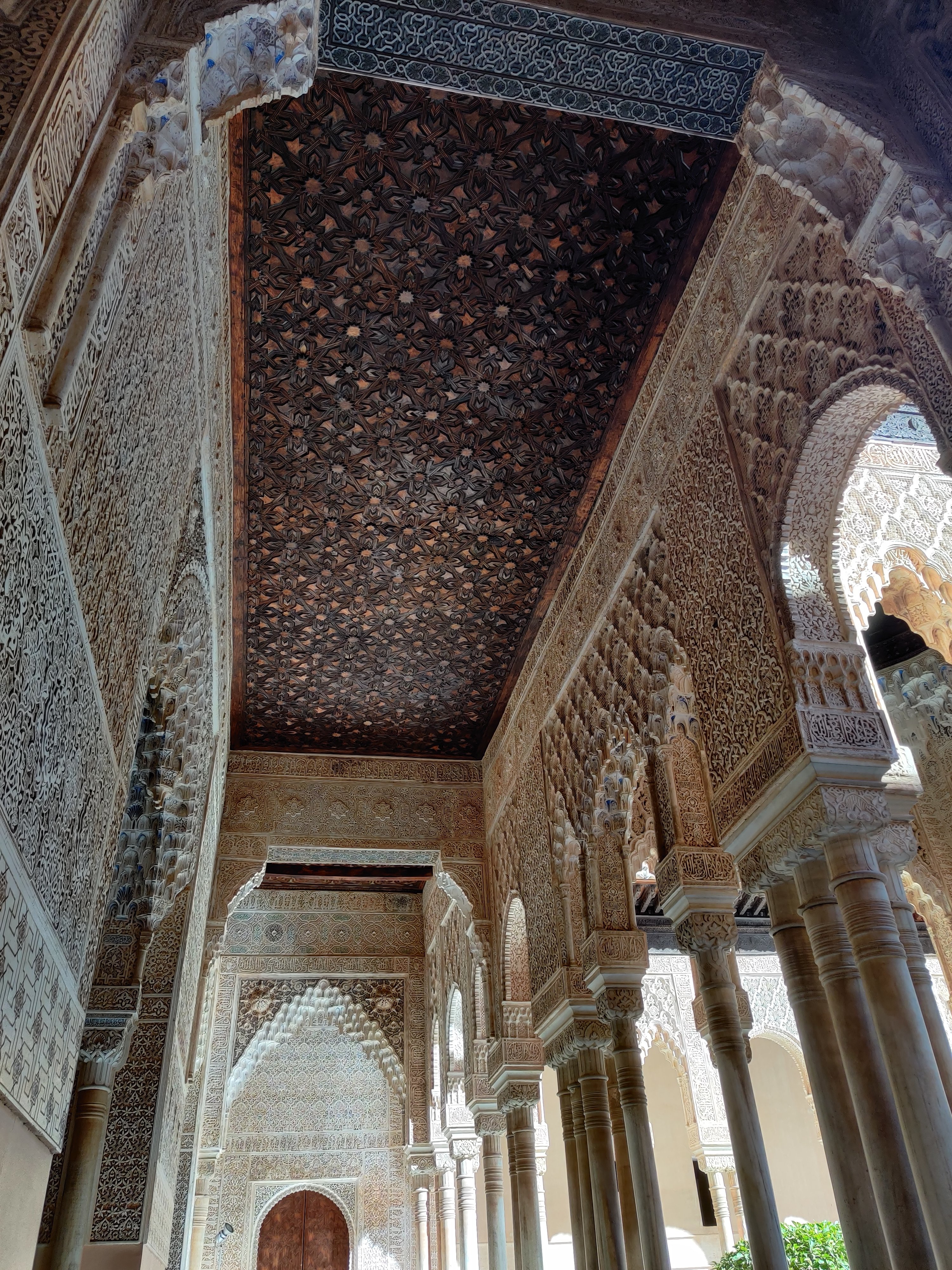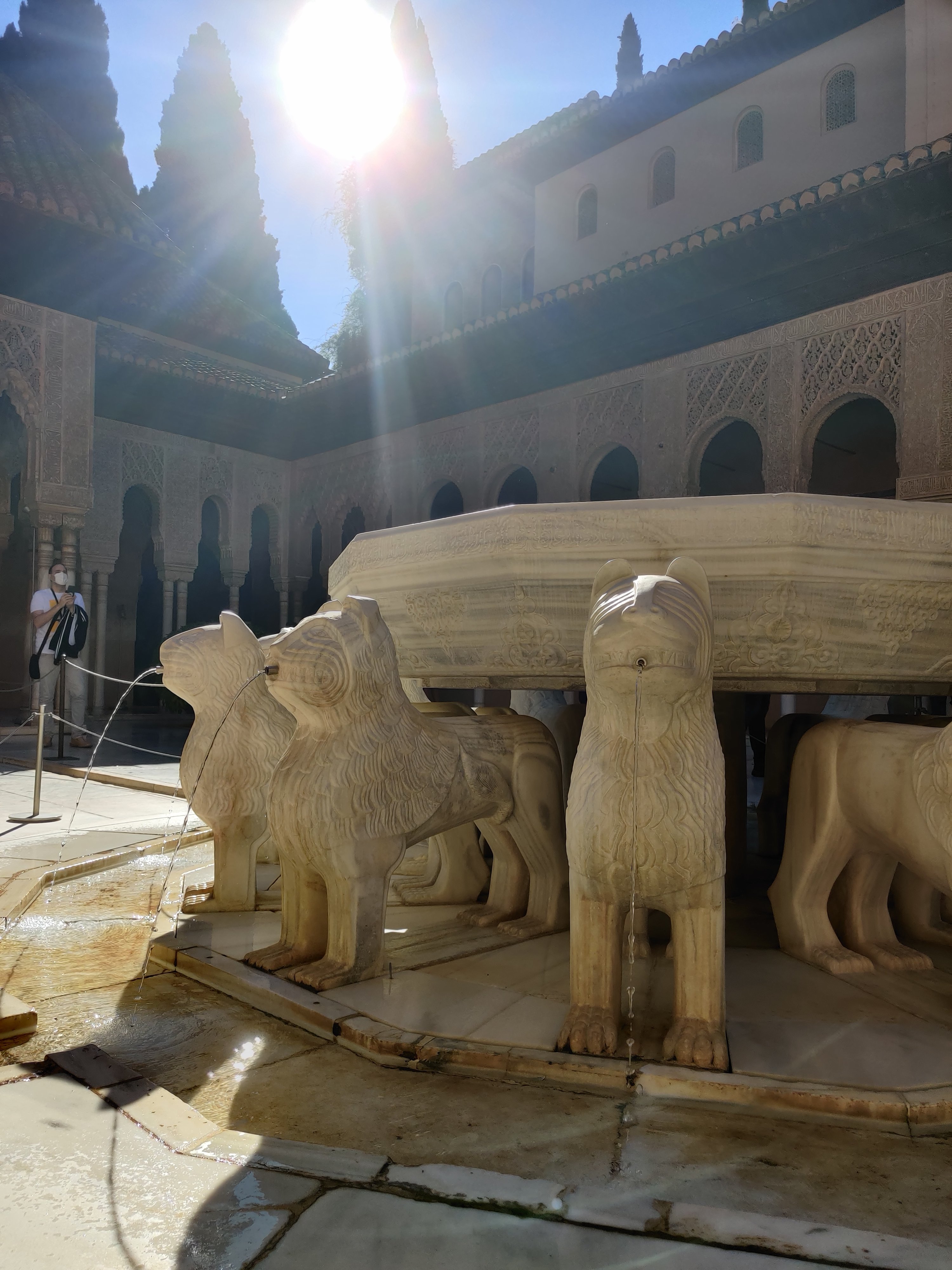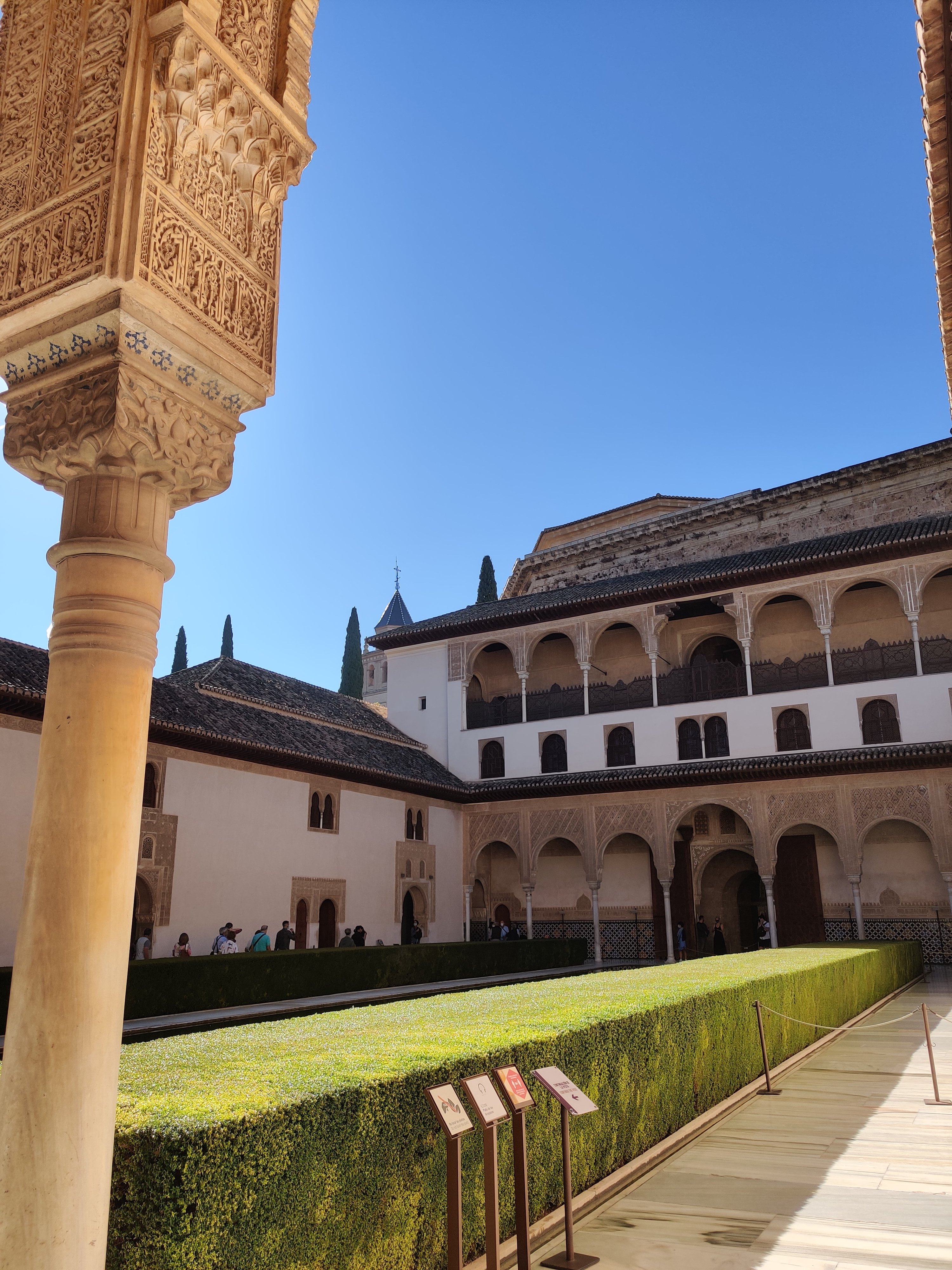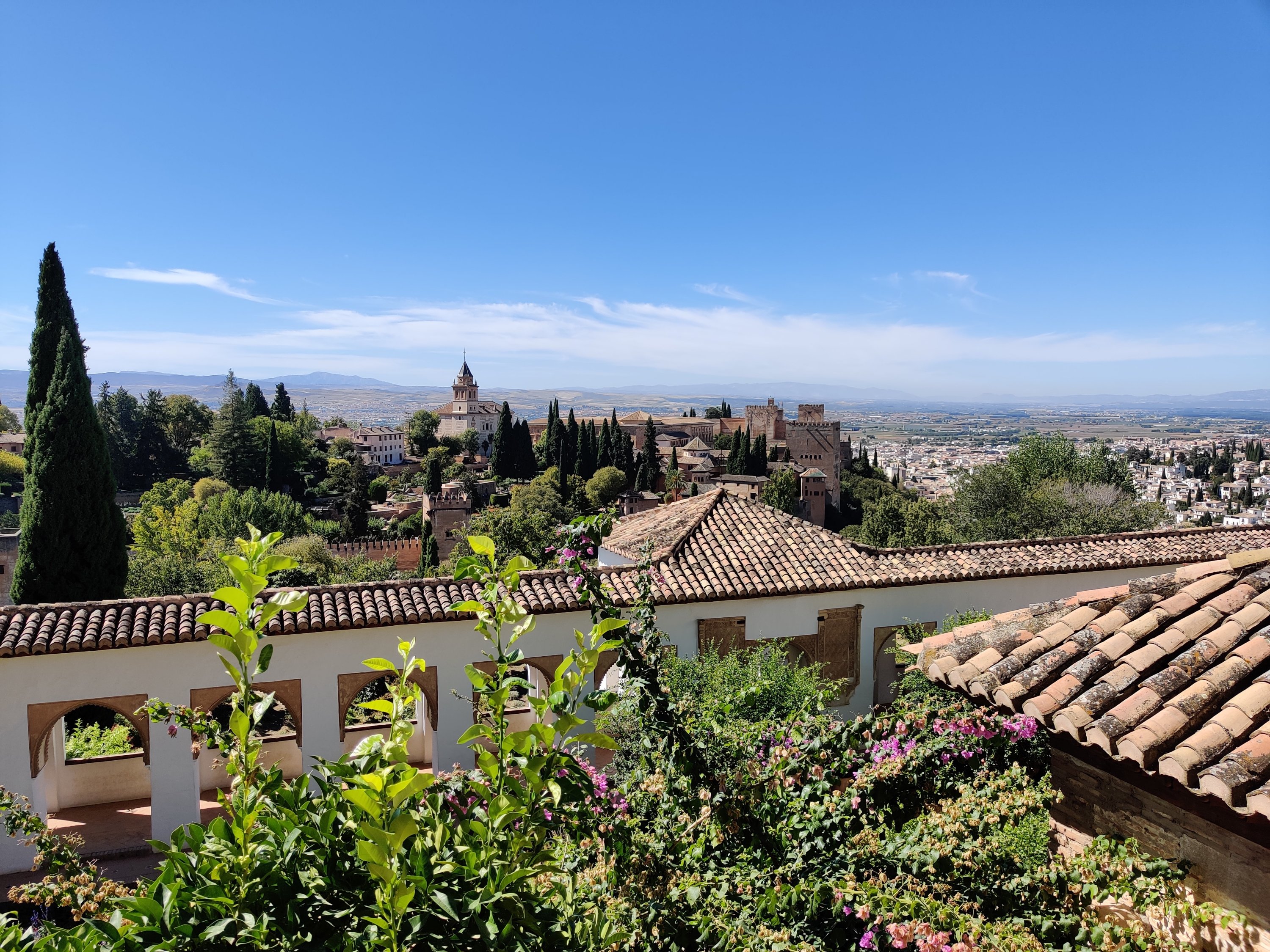 Het hotel heeft een parkeergarage waar we de motoren op een speciale motorparkeerplaats neerzetten. We blijven drie nachten in Granada, omdat we ook het Alhambra willen bezoeken en daar mag je echt wel een dagje voor uittrekken. Het heeft 3 complexen; Nasrid palaces, Alcazaba en Generalife. We hebben al ruim van tevoren thuis tickets gekocht, want het is altijd snel uitverkocht en er is een daglimiet aan mensen. We bezoeken eerst de Nasrid palaces die echt sprookjesachtig mooi is. Het Alhambra (Rode Paleis) is een Middeleeuws paleis en fort van de Moorse heersers van het koninkrijk Granada. De tuinen zijn ook schitterend aangelegd.