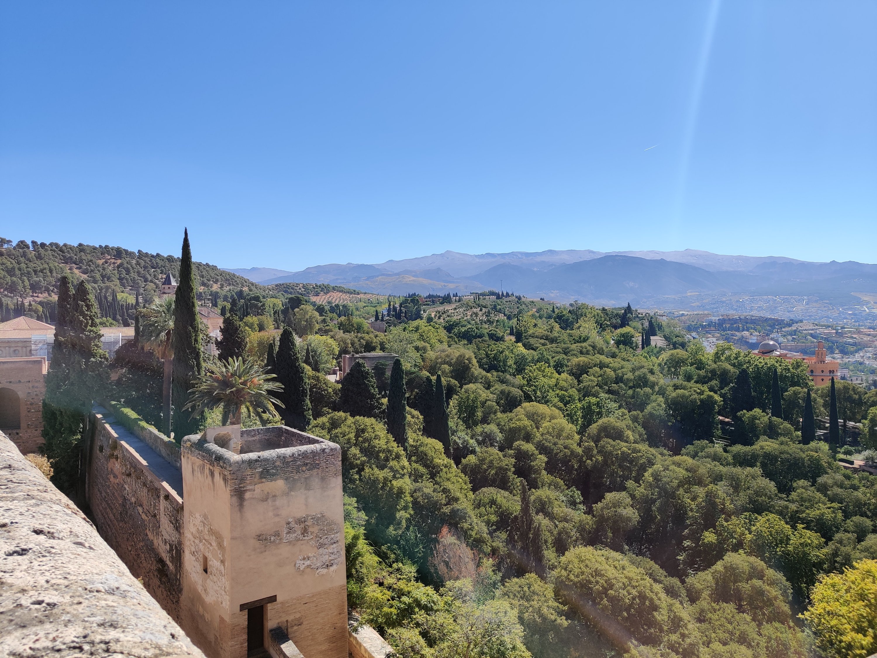 Verder zijn we in Granada naar de kathedraal geweest, die indrukwekkend groot is met meerdere orgels. De kathedraal staat in een wijkje met steegjes en winkeltjes die je het gevoel geven dat je in Marokko loopt. Op het pleintje zitten we lekker in het zonnetje op een terras. Het voordeel van in oktober gaan is dat het niet zo druk meer is en de temperatuur aangenaam. Een mooi uitstel van de Nederlandse herfst. Pap en ik zijn nog een rit gaan maken naar de Sierra Nevada. Een prachtig gebied, waar je hele mooie bochtige wegen hebt die de bergen ingaan of smal naar beneden het dal in.