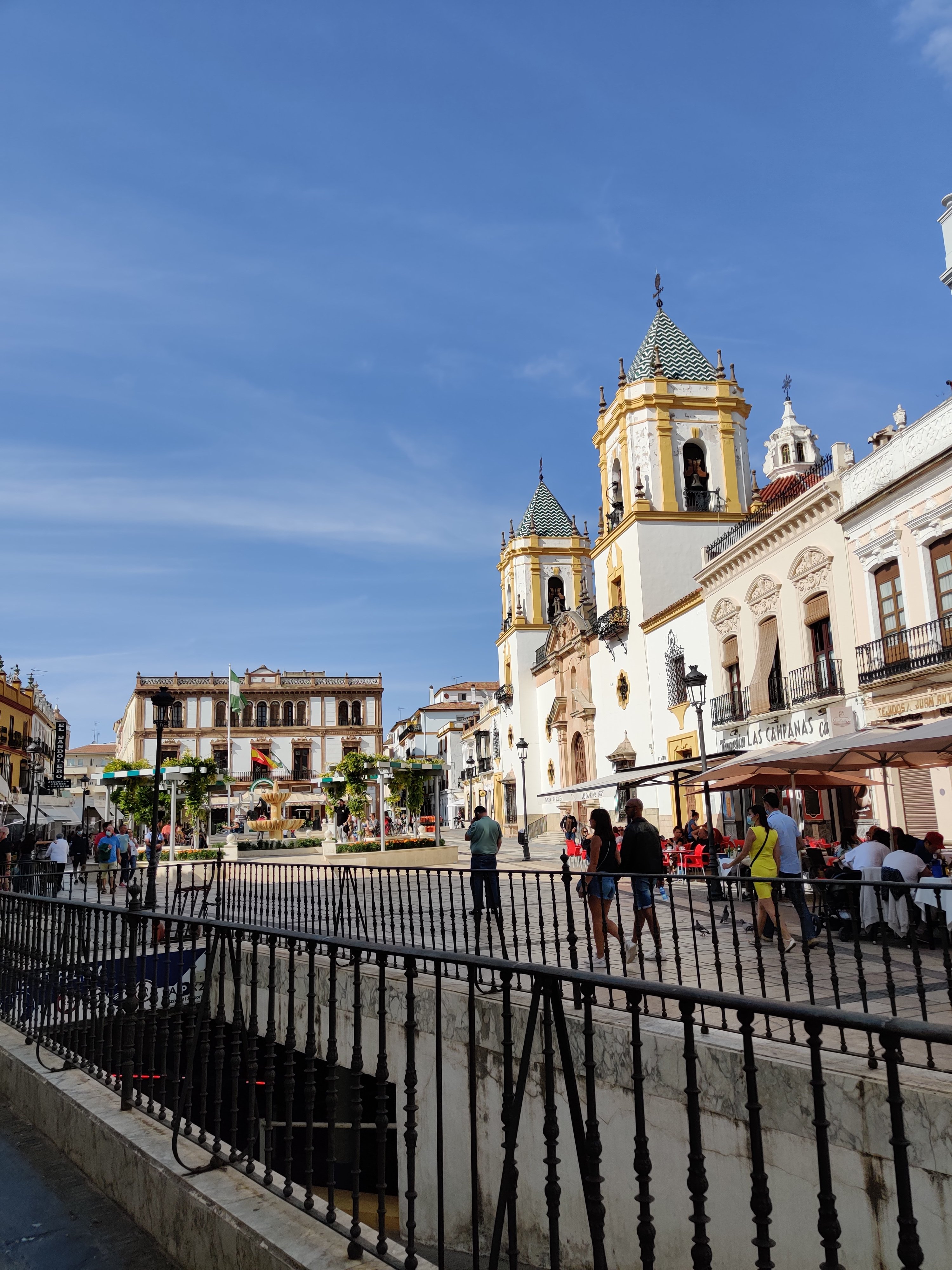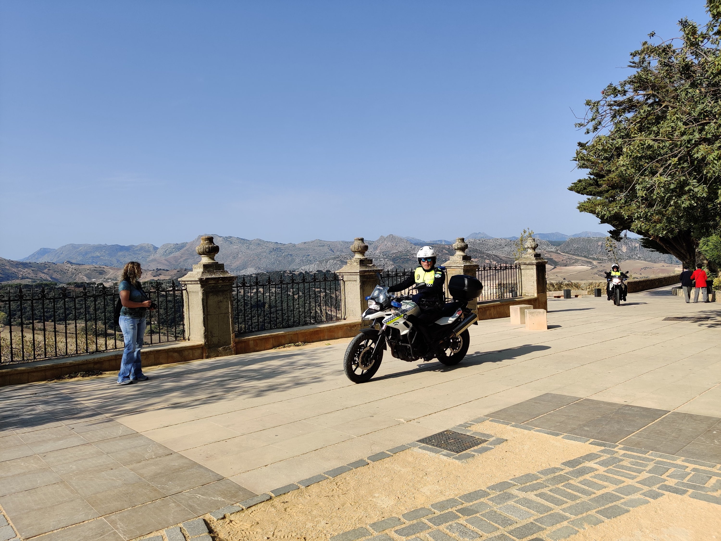 Sevilla verlaten we vroeg in de ochtend na de maandagspits om de hitte een beetje te ontwijken. Met 31 C was het echt warm daar. De parkeergarage trekt ons een poot uit door ons 3x te laten betalen voor 1 parkeervak, terwijl we met 3 motoren op 1 parkeervak stonden. Het is zinloos om in discussie te gaan merken we, maar kinderachtig is het wel dat de man aangeeft dat er een motorparking is een verdieping lager, maar dat is ons door de dame bij aankomst niet verteld. Bovendien als we met een auto in ditzelfde vak hadden gestaan waren we dus 1/3 van de prijs kwijt geweest dan nu. Gelukkig is dit het enige negatieve wat we deze vakantie meemaken. De mensen zijn erg vriendelijk en behulpzaam. Er wordt weinig Engels gesproken, maar het Spaans pak ik snel op. In de context kun je echt veel verstaan. Ook in het verkeer zijn mensen netjes. Alleen rotondes zijn een ding. Dat kunnen ze echt niet. Mensen snijden je regelmatig als ze van een andere baan naar links of rechts willen. Maar omdat we daar al voor gewaarschuwd waren, is hier goed op te anticiperen.
