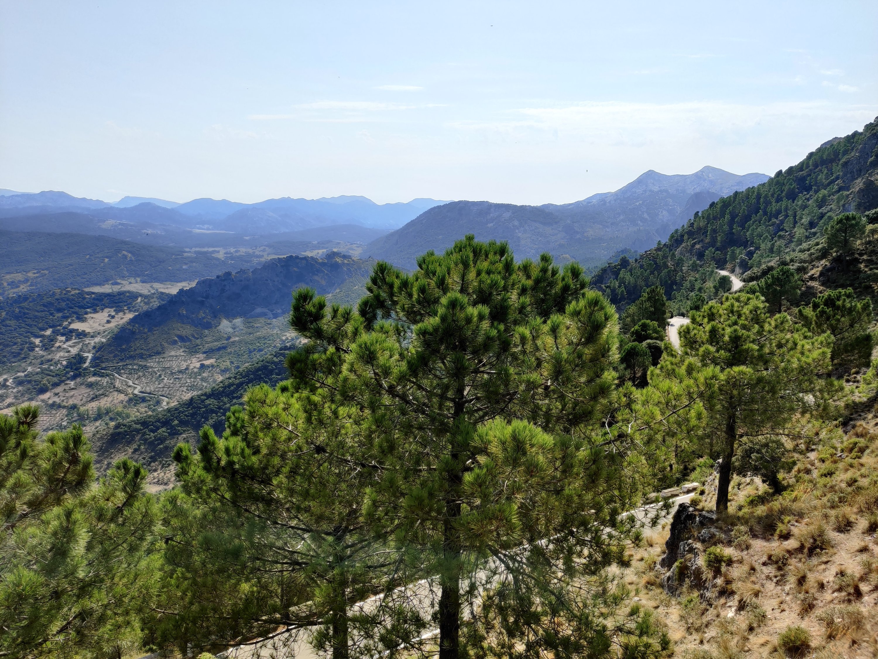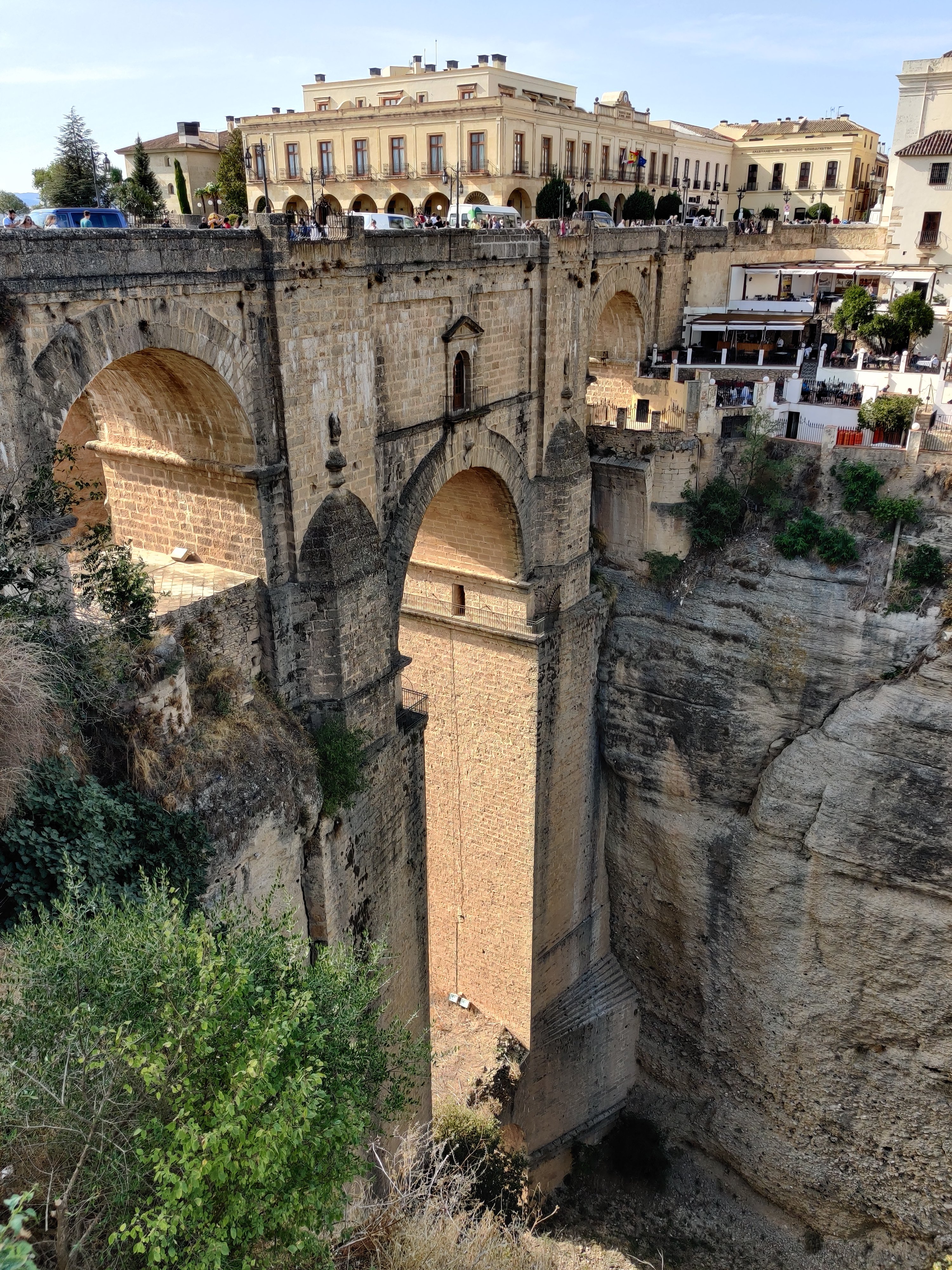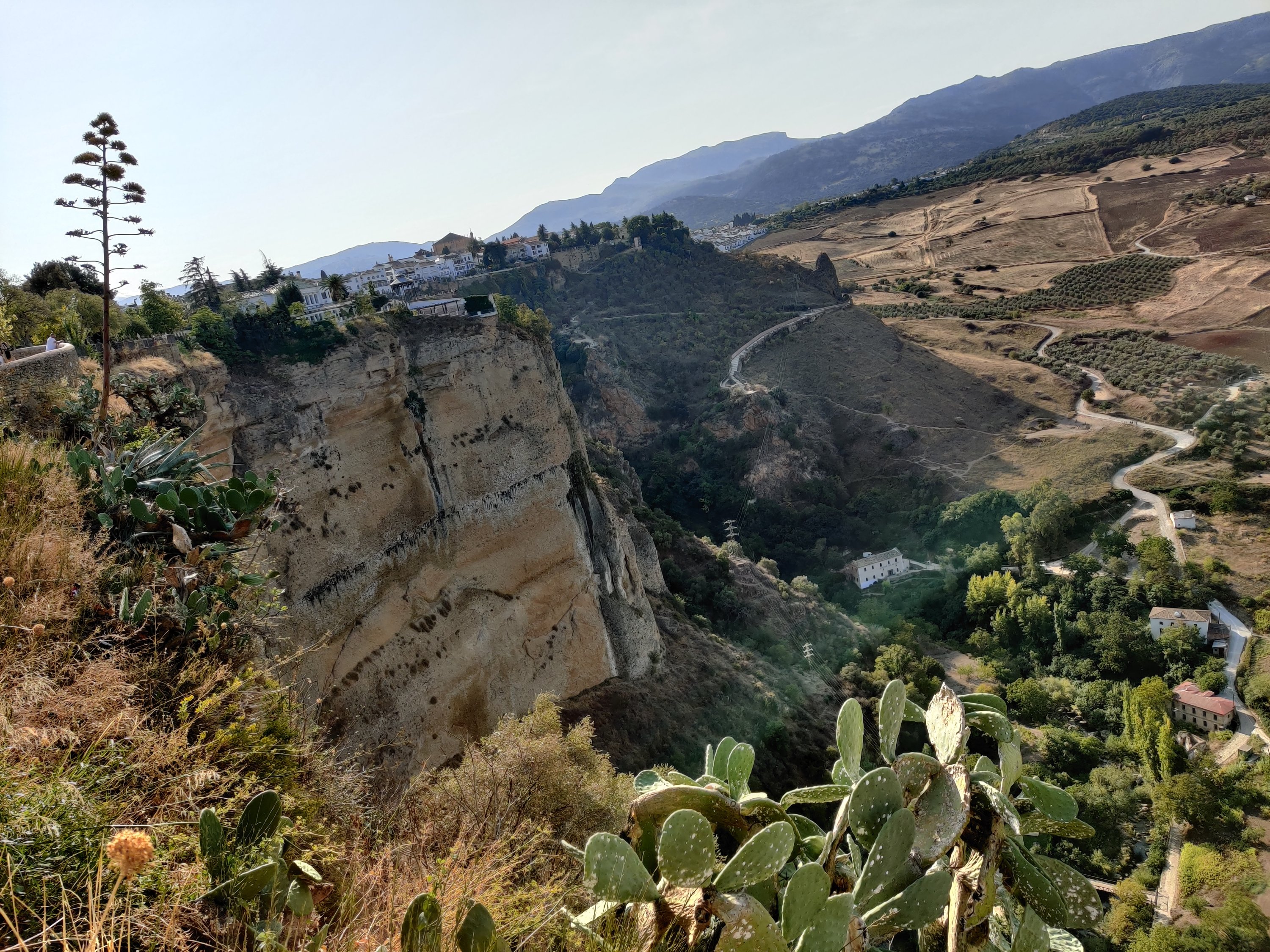 De tweede helft van de route naar Ronda is erg mooi. Veel groener dan de andere steden en koeler. We komen aan bij ons appartement en hebben een privé parking. Helemaal super. We lopen naar de prachtige Puente Nuevo (nieuwe brug) die over de kloof ligt. Ronda ligt op een plateau en je kunt vanaf de brug en andere punten in het park uitkijken over de kloof. Pap en ik zijn van Ronda door het nationale park Sierra de Grazalema gereden via Grazalema naar Zahara de la Sierra over hele bochtige wegen steil omhoog en naar beneden. Halverwege heb je het Puerto de Las Palomas. Een uitzichtpunt waar je de gieren boven je ziet zweven en heel ver kunt kijken.
