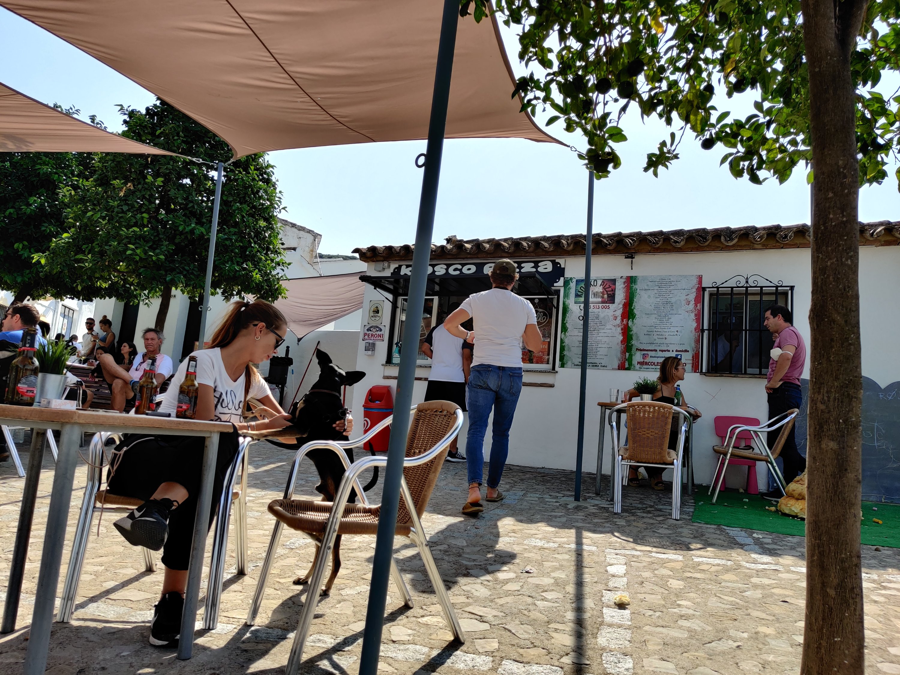 In Zahara lopen we naar een lokale kiosk waar we een verse Italiaanse pizza delen. De kiosk is van een Italiaan. Er hangt een heel gemoedelijk sfeertje en mensen zijn allemaal wat aan het drinken en/of eten. Families, wielrenners, wandelaars en wij als motorrijders.