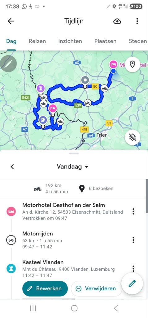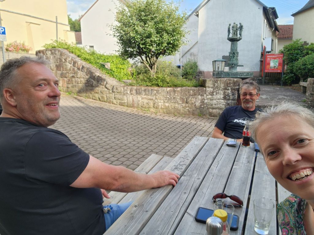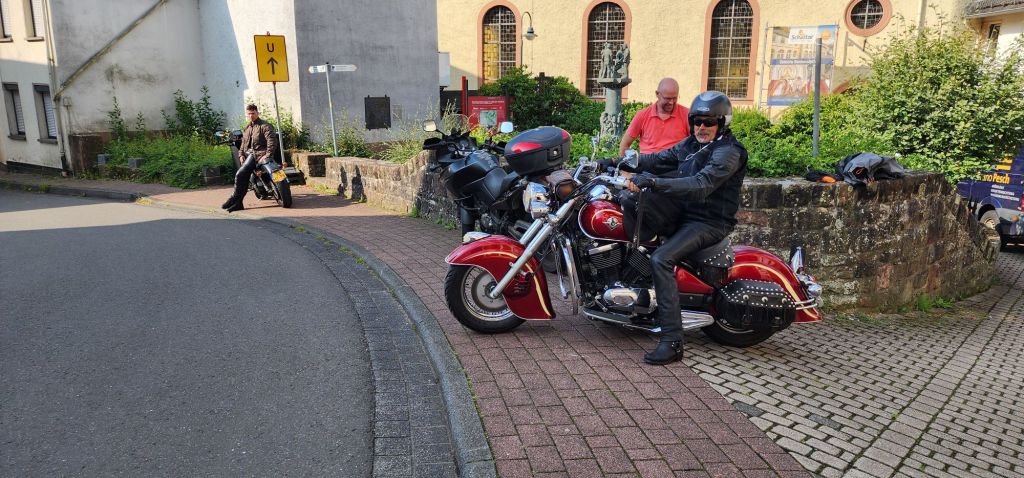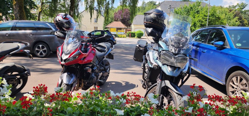 Donderdag met de motoren op de trailer richting Jan in Eisenschmitt. In 4 uur zonder problemen met een paar stops parkeren we de auto bij Motorhotel an der Salm. We worden al snel door een dorpeling gespot die dat direct aan Kim doorgeeft. De dochter van Jan heeft net met man Jeff boodschappen gedaan en daardoor kunnen we alvast de spullen op onze kamer leggen en ons omkleden. We rijden binnendoor naar Bitburg om bij de drogist goedkoper wat artikelen te halen. Direct al lekker rijden.